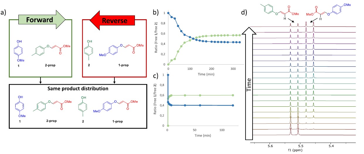 Dynamic Covalent Chemistry (DCvC) has gained increasing importance in supramolecular chemistry and materials science. Herein we prove the dynamic nature of the exchange between phenols and vinyl ethers. Exchange is fast at room temperature and under mild conditions. The equilibrium constants and the electronic effect of the phenol substituents were calculated. This novel incorporation to the DCvC toolbox could be quite useful, and as a proof it was used for the synthesis of a responsive molecular cage.