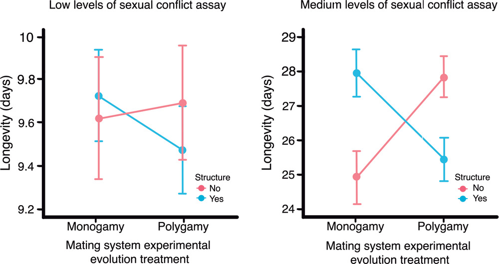 Despite the far-reaching evolutionary implications of sexual conflict, the effects of metapopulation structure, when populations are subdivided into several demes connected to some degree by migration, on sexual conflict dynamics are unknown. Here, we used experimental evolution in an insect model system, the seed beetle Callosobruchus maculatus, to assess the independent and interacting effects of selection histories associated with mating system (monogamy vs. polygamy) and population subdivision on sexual conflict evolution. We confirm traditional predictions from sexual conflict theory by revealing increased resistance to male harm in females from populations with a history of intense sexual selection (polygamous populations) compared to females from populations with a history of relaxed sexual selection (monogamous populations). However, selection arising from metapopulation structure reversed the classic pattern of sexually antagonistic coevolution and led to reduced resistance in females from polygamous populations. These results underscore that population spatial structure moderates sexual selection and sexual conflict, and more broadly, that the evolution of sexual conflict is contingent on ecological context. The findings also have implications for population dynamics, conservation biology, and biological control.