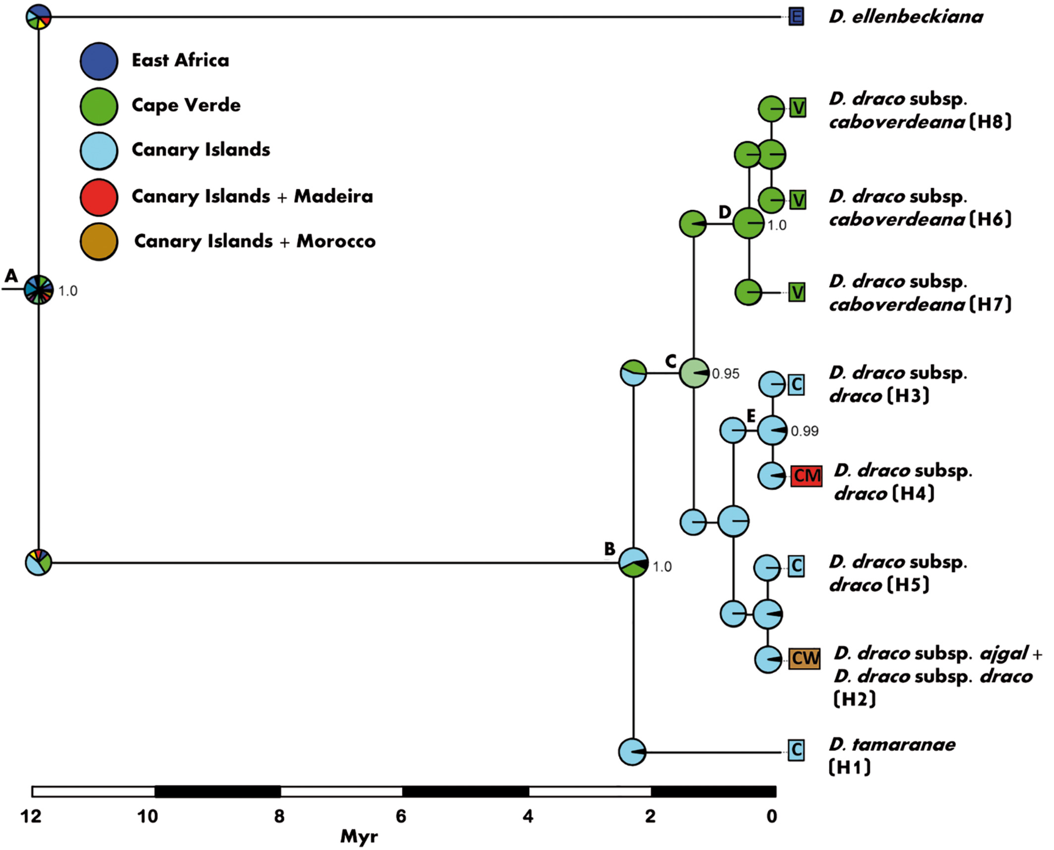 Iconic, threatened, but largely unknown: Biogeography of the Macaronesian dragon trees (Dracaena spp.) as inferred from plastid DNA markers