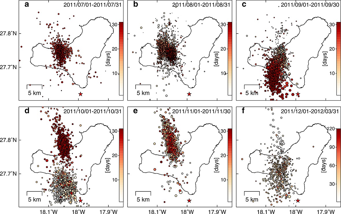 [1] Starting in July 2011, anomalous seismicity was observed at El Hierro Island, a young oceanic island volcano. On 12 October 2011, the process led to the beginning of a submarine NW‐SE fissural eruption at ~15 km from the initial earthquake loci, indicative of significant lateral magma migration. Here we conduct a multifrequency, multisensor interferometric analysis of spaceborne radar images acquired using three different satellite systems (RADARSAT‐2, ENVISAT, and COSMO‐SkyMed (Constellation of Small Satellites for Mediterranean Basin Observation)). The data fully captures both the pre‐eruptive and coeruptive phases. Elastic modeling of the ground deformation is employed to constrain the dynamics associated with the magmatic activity. This study represents the first geodetically constrained active magmatic plumbing system model for any of the Canary Islands volcanoes, and one of the few examples of submarine volcanic activity to date. Geodetic results reveal two spatially distinct shallow (crustal) magma reservoirs, a deeper central source (9.5 ± 4.0 km), and a shallower magma reservoir at the flank of the southern rift (4.5 ± 2.0 km). The deeper source was recharged, explaining the relatively long basaltic eruption, contributing to the observed island‐wide uplift processes, and validating proposed active magma underplating. The shallowest source may be an incipient reservoir that facilitates fractional crystallization as observed at other Canary Islands. Data from this eruption supports a relationship between the depth of the shallow crustal magmatic systems and the long‐term magma supply rate and oceanic lithospheric age. Such a relationship implies that a factor controlling the existence/depth of shallow (crustal) magmatic systems in oceanic island volcanoes is the lithosphere thermomechanical behavior.