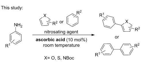 Ascorbic Acid as an Initiator for the Direct C-H Arylation of (Hetero)arenes with Anilines Nitrosated In Situ