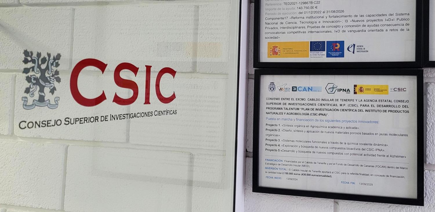 El Instituto de Productos Naturales y Agrobiología (IPNA-CSIC) ha completado satisfactoriamente la primera anualidad del convenio Talentum Innovación CSIC, firmado el 10 de septiembre de 2024 entre el Consejo Superior de Investigaciones Científicas (CSIC) y el Cabildo Insular de Tenerife.
