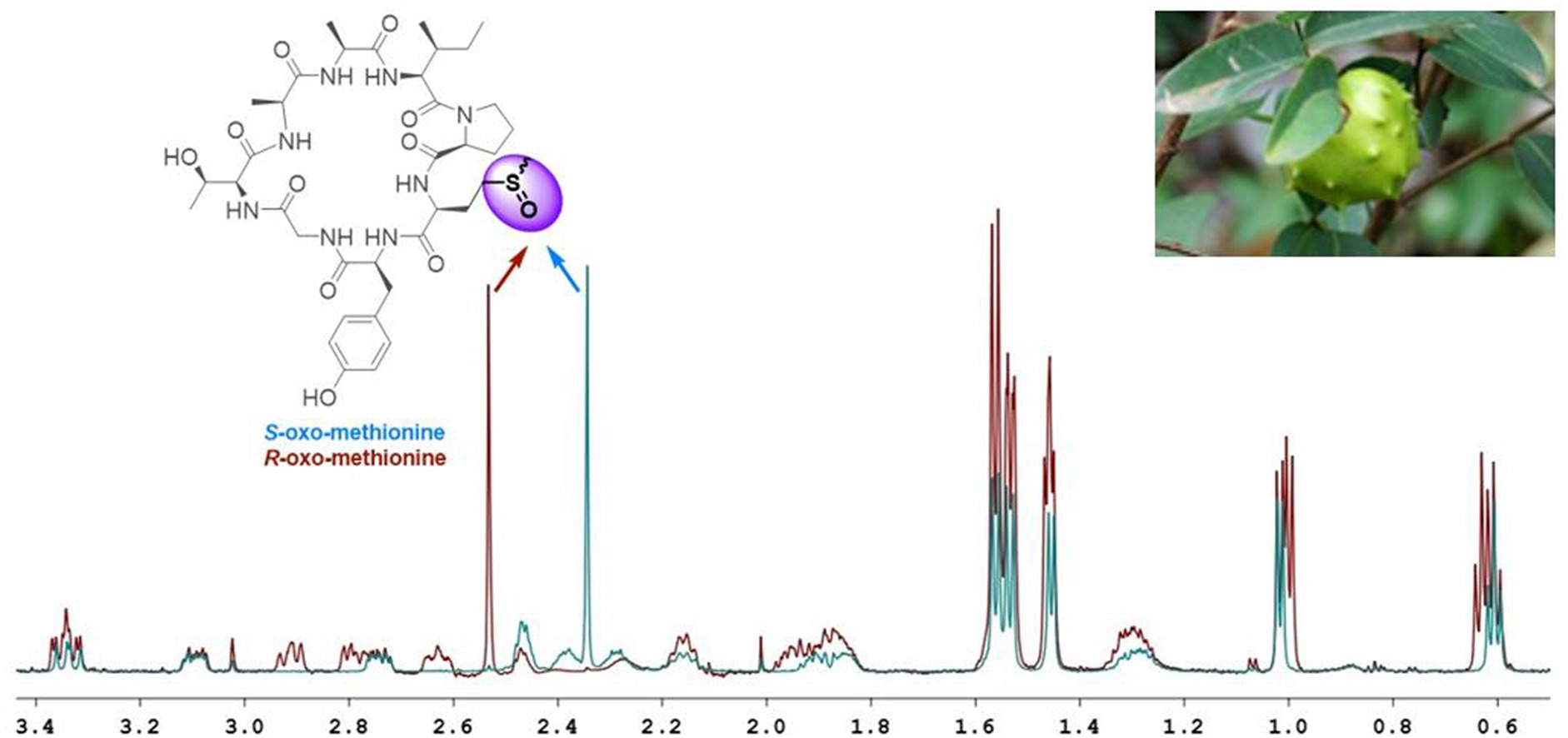 Four cyclic octapeptides, squamins C–F, were isolated from the seeds of Annona globiflora Schltdl. These compounds share part of their amino acid sequence, -Pro-Met(O)-Tyr-Gly-Thr-, with previously reported squamins A and B. Their structures were determined using NMR spectroscopic techniques together with quantum mechanical calculations (QM-NMR), ESI-HRMS data and a modified version of Marfey's chromatographic method. All compounds showed cytotoxic activity against DU-145 (human prostate cancer) and HeLa (human cervical carcinoma) cell lines. Clearly, A. globiflora is an important source of bioactive molecules, which could promote the sustainable exploitation of this undervalued specie.