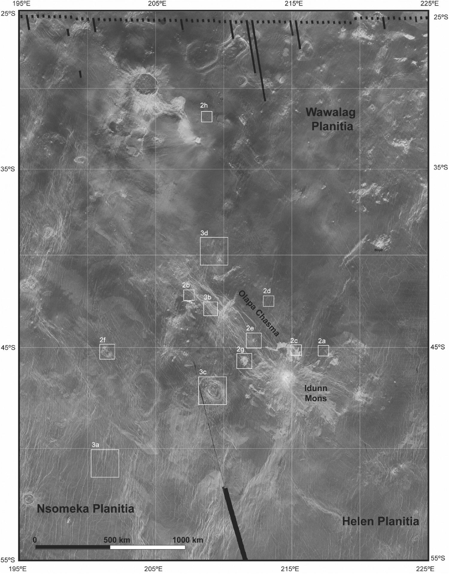We present a 1:5,000,000 geological map of the Imdr Regio area of Venus. Geological mapping was conducted using synthetic aperture radar (SAR) images, altimetry and stereo-derived topography data from NASA's Magellan mission. The map covers an area of approximately 7.9 × 106 km2 and exhibits a variety of tectonic structures and units of volcanic origin related to the evolution of Imdr Regio and surrounding plains. We have differentiated primary structures related to the emplacement of the different units from tectonic structures that deform them. These structures are also organized between those that are regional in extent and those that are related to the evolution of local large tectono-volcanic structures. The units in the map area represent different geologic processes (e.g. volcanism) that took place during the evolution of the large topographic rise. Geologic mapping illustrates a complex evolution with different styles of deformation and volcanism in this part of the planet.