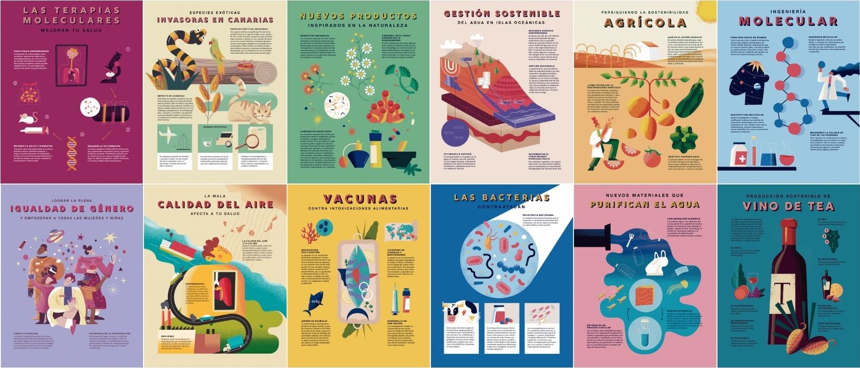 Cada uno de los paneles de esta exposición consiste en una infografía didáctica sobre una línea de investigación del IPNA y su vinculación con los objetivos de desarrollo sostenible (ODS) planteados en la Agenda 2030 definida por la ONU. Está compuesta por 12 paneles informativos y una portada y presenta también material complementario de libre descarga.