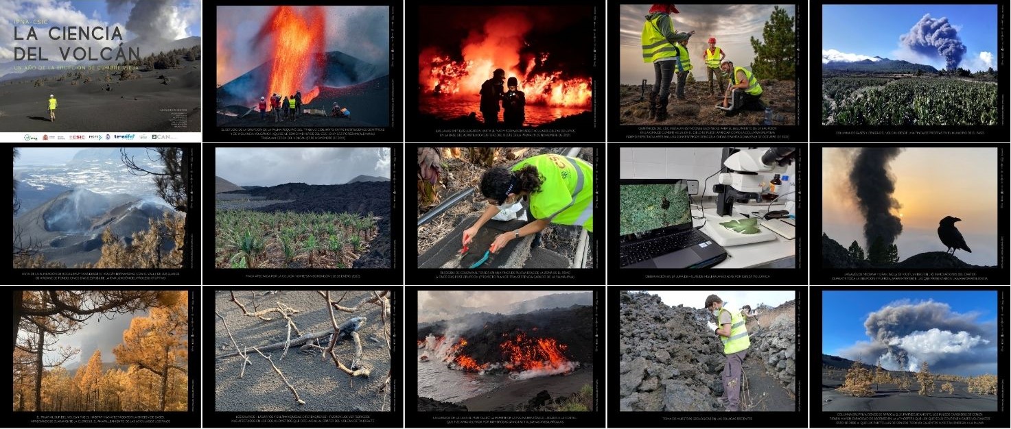 Está compuesta por 15 fotografías de tamaño A1 impresas sobre PVC de 5 mm. Se compone de imágenes sobre la actividad desarrollada por los investigadores de los centros IPNA, IEO e IGME, todos ellos pertenecientes al CSIC, durante la erupción del Tajogaite.