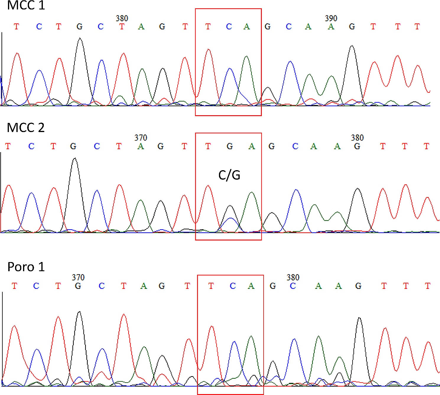 No detectable truncating mutations in large T antigen (LT-Ag) sequence of Merkel cell polyomavirus (MCPyV) DNA obtained from porocarcinomas