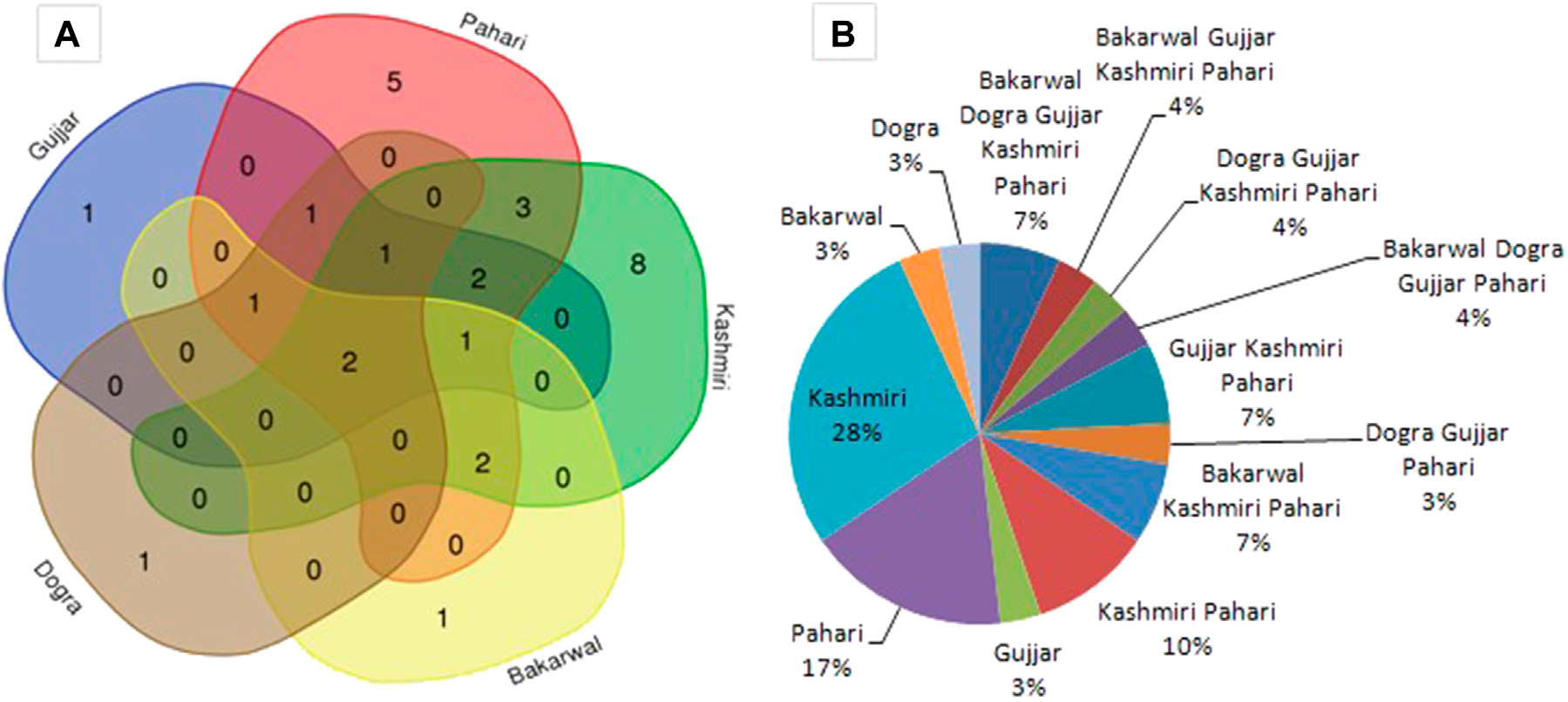 Results: We documented 30 species belonging to five classes and 20 families used for different ethnozoological practices (medicinal, magico-religious, food, costume, omen, poultry, and agricultural purposes). The use of fauna resources varied across ethnic groups, and cross-cultural examination revealed that Kashmiri and Pahari populations were more similar in their species utilization. The maximum number of species (27%) was uniquely used by Kashmiri, followed by Pahari (17%), and the least by Dogra and Gujjar (3% each). The ethnozoological use of all documented species is unprecedented. In addition to ethnozoological usage, various documented species (Apis cerana, Apis mellifera, Hirudinaria granulosa, and Bombyx mori) were also important for the local population’s livelihoods.