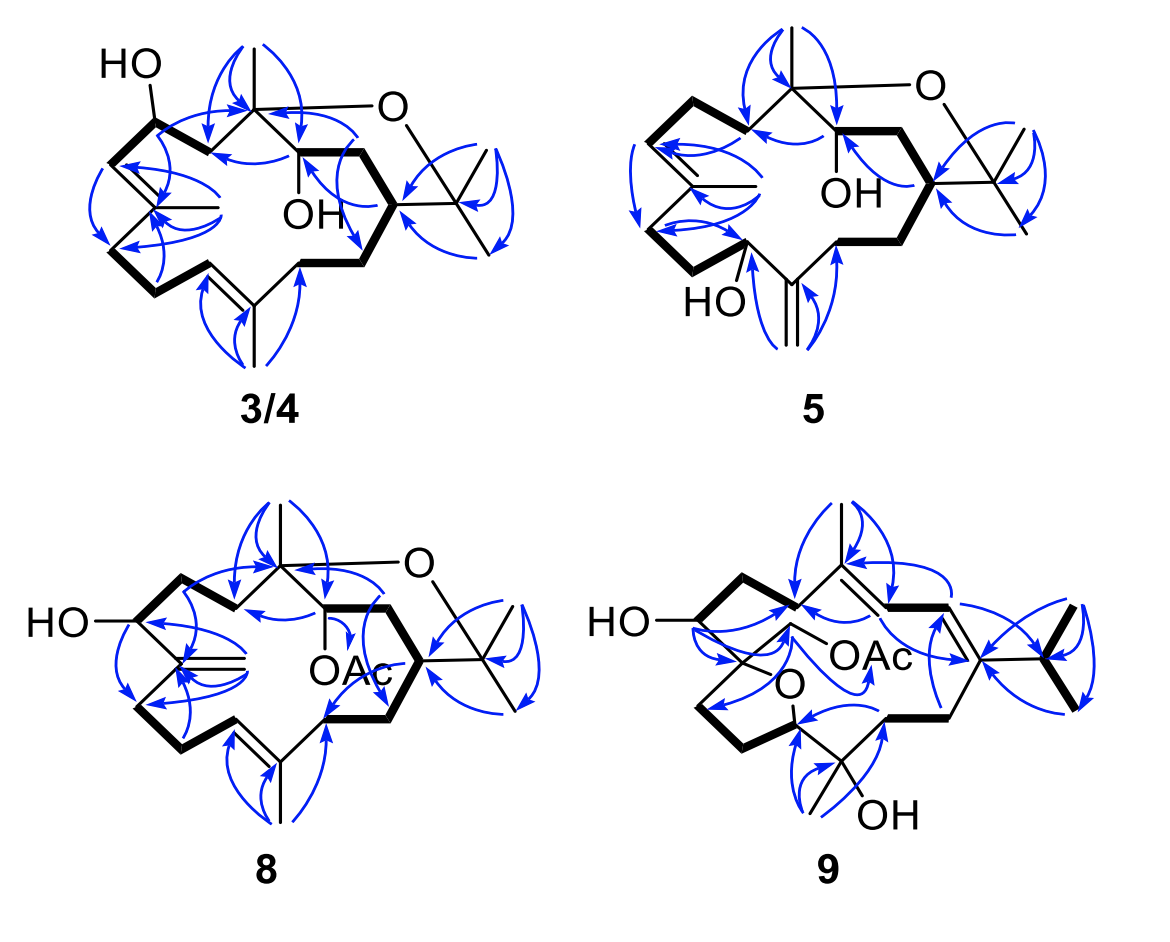 Rare new bicyclic cembranoid ethers and a novel trihydroxy prenylated guaiane from the Xisha Soft Coral Lobophytum sp