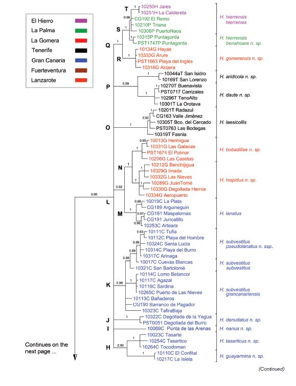 The taxonomic review of the genus Herpisticus Germar, 1823, endemic to the Canary Islands, is undertaken with support of molecular data (mtCOI). The morphological study includes the description of the larva and pupa of this genus. To the 5 previously known species, 20 taxa have been added, comprising the resurrection of H. eremita var. γ lanatus Wollaston, 1864 as valid species, H. grancanariensis Palm 1974 as valid subspecies of H. subvestitus Wollaston, 1864, and the following new taxa: H. famarae n. sp. from Lanzarote; H. betancuriae n. sp., H. jandiensis n. sp. and H. rectipes n. sp. from Fuerteventura; H. subvestitus pseudolanatus n. ssp., H. guanarteme n. sp., H. denudatus n. sp., H. gigas n. sp., H. guayarmina n. sp., H. tasarticus n. sp., H. scopulus n. sp., and H. nanus n. sp. from Gran Canaria; H. daute n. sp. and H. aridicola n. sp. from Tenerife; H. gomerensis n. sp., H. hispidus n. sp. and H. bobadillae n. sp. from La Gomera; and H. hierrensis benahoare n. ssp. from La Palma. Except for the subspecies H. hierrensis hierrensis, which is present on the islands of El Hierro and La Palma, all the other taxa are mono-insular endemics. Identification keys (♂), distribution maps, and photographs of imagos of all 25 taxa are provided, as well as some general comments on the biology of the group, its potential as agricultural pest, and conservation perspectives.