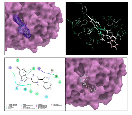 Two new brominated bis(indole) alkaloids, dragmacidins I (1) and J (2), showing low micromolar cytostatic activity, along with three known congeners were isolated from the Tanzanian sponge Dragmacidon sp. and their structures determined by the analysis of their NMR and MS data. From the study of their mechanism of action, it can be concluded that the mitotic arrest at metaphase in treated tumor cells, mediated by inhibition of PP1 and/or PP2A phosphatases is involved in the observed antiproliferative activity. Differences in their bioactivities were rationalized, and a plausible binding mode is proposed on the basis of computational simulations.