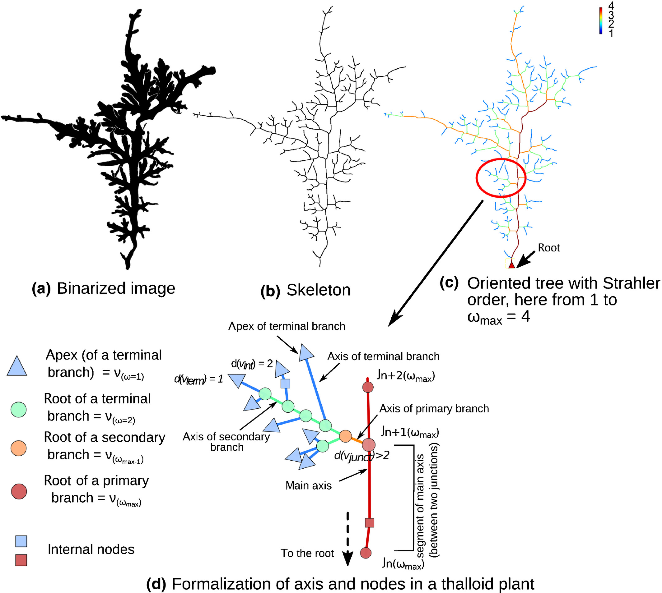 Morphometrics, the assignment of quantities to biological shapes, is a powerful tool to address taxonomic, evolutionary, functional and developmental questions. We propose a novel method for shape quantification of complex modular architecture in thalloid plants, whose extremely reduced morphologies, combined with the lack of a formal framework for thallus description, have long rendered taxonomic and evolutionary studies extremely challenging. Using graph theory, thalli are described as hierarchical series of nodes and edges, allowing for accurate, homologous and repeatable measurements of widths, lengths and angles. The computer program MorphoSnake was developed to extract the skeleton and contours of a thallus and automatically acquire, at each level of organization, width, length, angle and sinuosity measurements. Through the quantification of leaf architecture in Hymenophyllum ferns (Polypodiopsida) and a fully worked example of integrative taxonomy in the taxonomically challenging thalloid liverwort genus Riccardia, we show that MorphoSnake is applicable to all ramified plants. This new possibility of acquiring large numbers of quantitative traits in plants with complex modular architectures opens new perspectives of applications, from the development of rapid species identification tools to evolutionary analyses of adaptive plasticity.