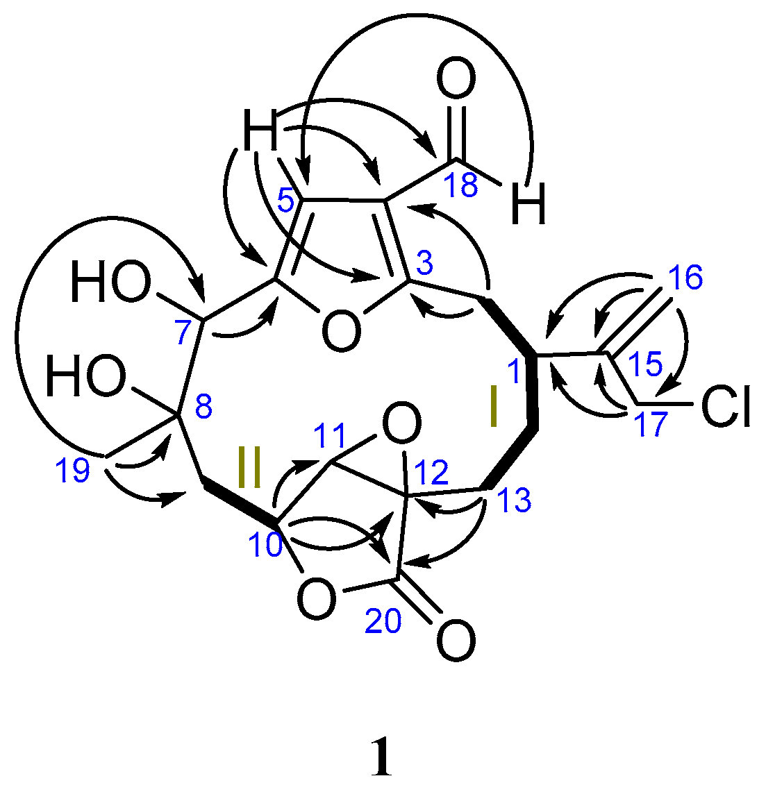 Two new chloro-furanocembranolides (1, 2) and two new 1,4-diketo cembranolides (3, 4) were isolated from the crude extract of Leptogorgia sp. together with a new seco-furanocembranolide (5) and the known Z-deoxypukalide (6), rubifolide (7), scabrolide D (8) and epoxylophodione (9). Their structures were determined based on spectroscopic evidence. Four compounds: 1, 2, 7 and 8 were found to activate the proliferation of pancreatic insulin-producing (beta) cells.