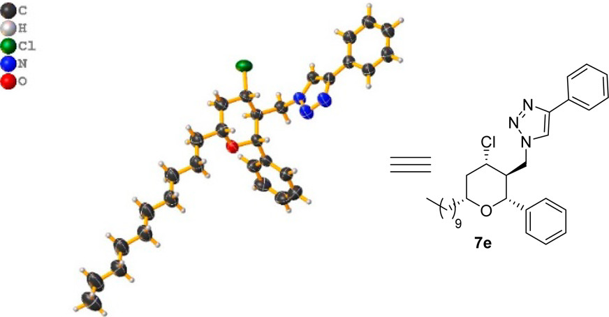 A new, direct, and diastereoselective synthesis of activated 2,3,4,6-tetrasubstituted tetrahydro-2H-pyrans is described. In this reaction, iron(III) catalyzed an SN2′–Prins cyclization tandem process leading to the creation of three new stereocenters in one single step. These activated tetrahydro-2H-pyran units are easily derivatizable through CuAAC conjugations in order to generate multifunctionalized complex molecules. DFT calculations support the in situ SN2′ reaction as a preliminary step in the Prins cyclization.