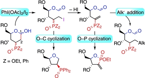 Fragmentation of carbohydrate anomeric alkoxyl radicals: Synthesis of chiral polyhydroxylated β-iodo- and alkenylorganophosphorus(V) compounds