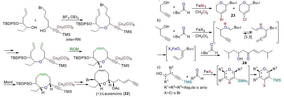 Se presenta un resumen de algunos métodos utilizados en la síntesis de productos naturales bioactivos de origen marino. El artículo se estructura acorde al orden en que son introducidos los enlaces más importantes en los heterociclos oxigenados. Se discute asimismo la similitud de algunos métodos sintéticos utilizados con los usados por los organismos vivos productores.