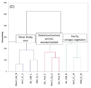 Background Natural wine (NW) lacks an official or agreed definition, but it can be generally described as a wine produced with organic or biodynamic grapes with minimal intervention in the cellar, with minimal or no use of oenological additives. This paper aims to test the hypotheses that self-defined NWs differ from conventional wines (CW) in their chemical composition and main sensory characteristics. The levels of conventional oenological parameters, turbidity, biogenic amines, ochratoxin A, ethyl carbamate, sulphites, chlorides, some metals, major, trace, and Strecker aldehydes volatile compounds were determined in 28 wines including natural and conventional Spanish commercial white wines. Wines were also sensory described following labelled free sorting task. Results NWs presented higher pH, volatile acidity (VA) and turbidity values, and more intense yellow colour while lower malic acid content than their conventional counterparts. NWs presented lower levels of total sulphur dioxide but significantly higher levels of biogenic amine putrescine, although both compounds are within the legal limits in all cases. None of the dimensions of the similarity space discriminated NWs from CWs. However, 70% of the NWs were grouped on the basis of various aromatic defects related to their higher content in 4-ethylphenols and VA. The remaining 30% were not differentiated from their conventional counterparts. Conclusion It could be confirmed that NW can be globally differentiated from CW attending to their chemical and their sensory profiles, while the content in toxicants was not significantly different, with the exception of total sulphur dioxide and putrescine levels.