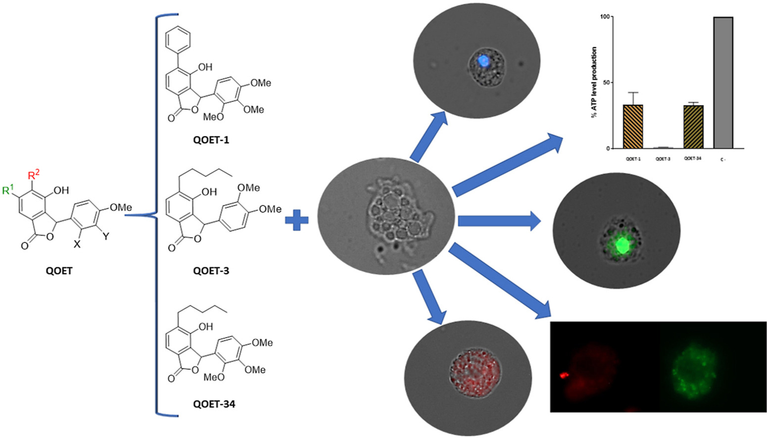Free-living amoebae of Acanthamoeba spp. are causative agents of human infections such as granulomatous amoebic encephalitis (GAE) and Acanthamoeba keratitis (AK). The exploration of innovative chemical entities from natural sources that induce intrinsic apoptotic pathway or a Programmed Cell Death (PCD) in Acanthamoeba protozoa is essential to develop new therapeutic strategies. In this work, the antiamoeboid activity of squamins C–F (1–4), four cyclooctapeptides isolated from Annona globiflora was tested in vitro against Acanthamoeba castellanii Neff, A. polyphaga, A. quina, and A. griffini, and a structure–activity relationship was also established. The most sensitive strain against all tested cyclooctapeptides was A. castellanii Neff being the R conformers of the S-oxo-methionine residue, squamins D (2) and F (4), the most active against the trophozoite stage. It is remarkable that all four peptides showed no cytotoxic effects against murine macrophages cell line J774A.1. The analysis of the mode of action of squamins C–F against A. castellanii indicate that these cyclopeptides induced the mechanisms of programmed cell death (PCD). All peptides trigger mitochondrial damages, significant inhibition of ATP production compared to the negative control, chromatin condensation and slight damages in membrane that affects its permeability despite it conserves integrity at the IC90 for 24 h. An increase in reactive oxygen species (ROS) was observed in all cases.