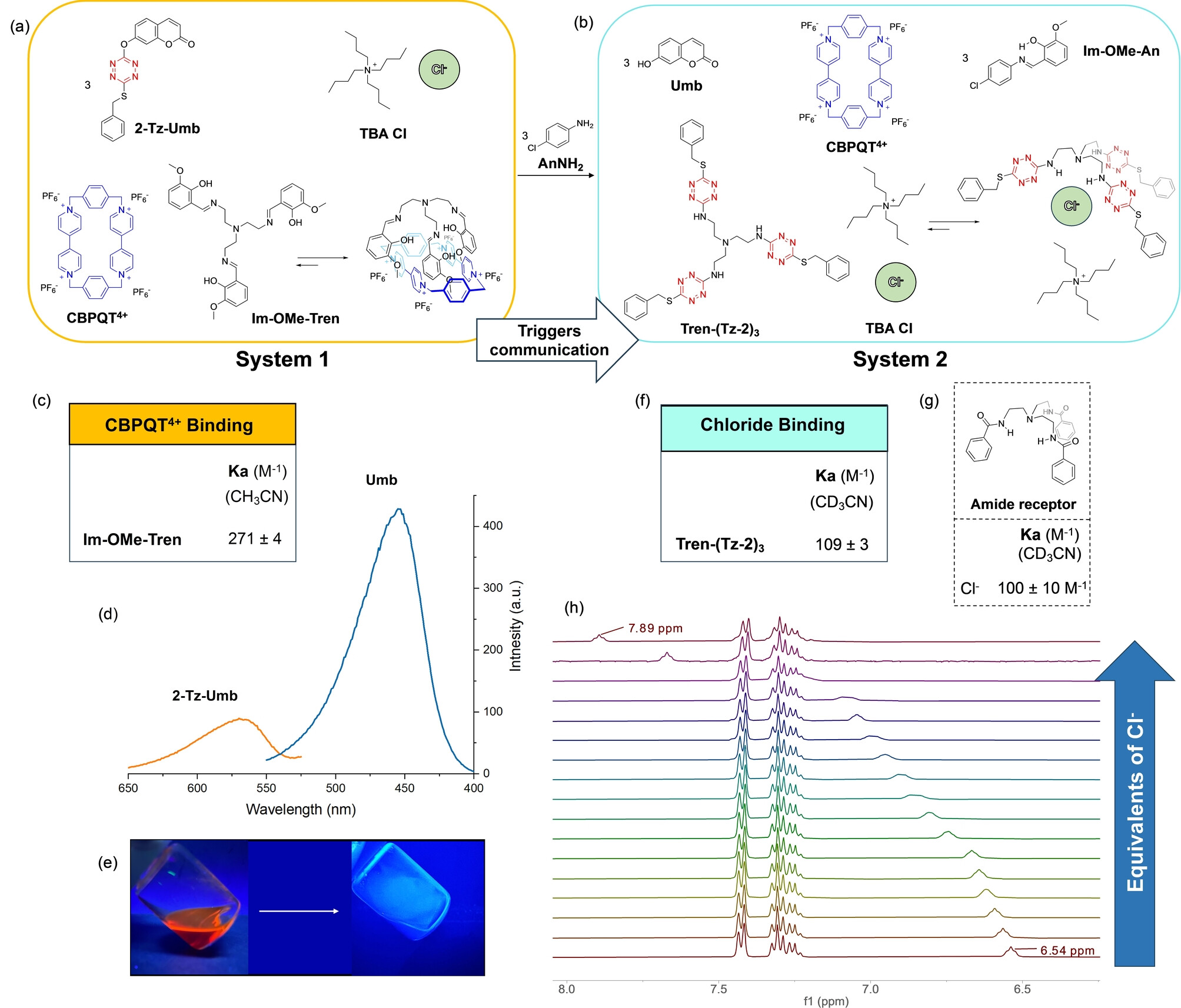 Multiple dynamic libraries of compounds are generated when more than one reversible reaction comes into play. Commonly, two or more orthogonal reversible reactions are used, leading to non-communicating dynamic libraries which share no building blocks. Only a few examples of communicating libraries have been reported, and in all those cases, building blocks are reversibly exchanged from one library to the other, constituting an antiparallel dynamic covalent system. Herein we report that communication between two different dynamic libraries through an irreversible process is also possible. Indeed, alkyl amines cancel the dynamic regime on the nucleophilic substitution of tetrazines, generating kinetically inert compounds. Interestingly, such amine can be part of another dynamic library, an imine-amine exchange. Thus, both libraries are interconnected with each other by an irreversible process which leads to kinetically inert structures that contain parts from both libraries, causing a collapse of the complexity. Additionally, a latent irreversible intercommunication could be developed. In such a way, a stable molecular system with specific host–guest and fluorescence properties, could be irreversibly transformed when the right stimulus was applied, triggering the cancellation of the original supramolecular and luminescent properties and the emergence of new ones.